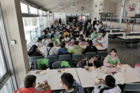 身体を動かした後の食事もおいしく、カレーをお替りする子が大勢いました。