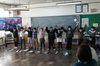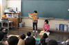 学校長からは、今学期の活動を写真で振り返りながら、それぞれの児童の頑張りが紹介されました。